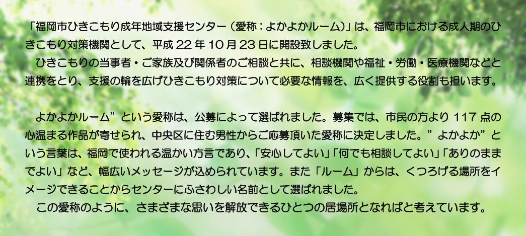 Copyright (c) 福岡市ひきこもり成年地域支援センター All Rights Reserved